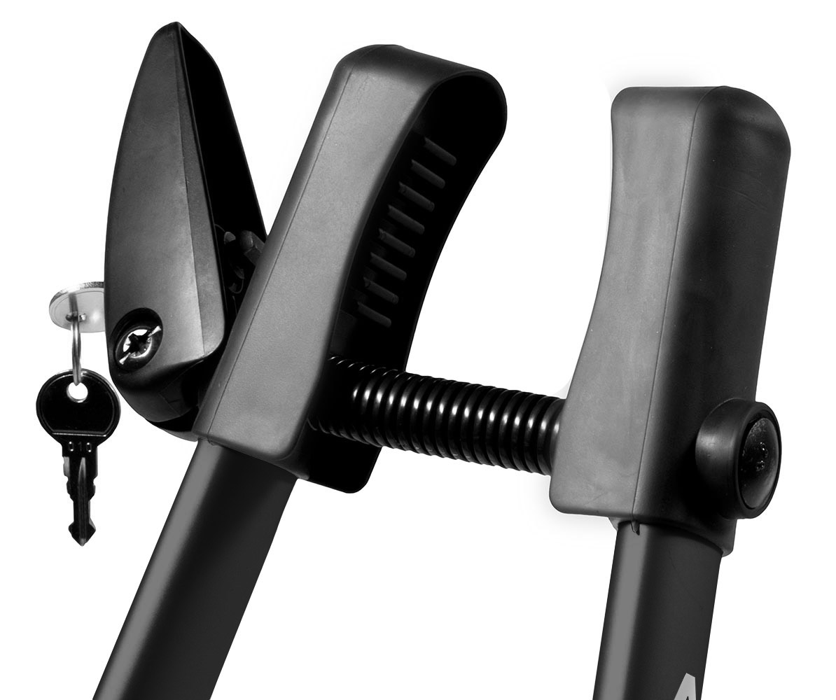 W uchwycie zastosowano skuteczne, kompleksowe zabezpieczenie antykradzieżowe. Dołączone do zestawu zamki na kluczyk pozwalają na zamknięcie roweru w uchwycie oraz zabezpieczenie samego uchwytu przed niepowołanym dostępem. W zestawie znajduje się także zapasowy klucz.