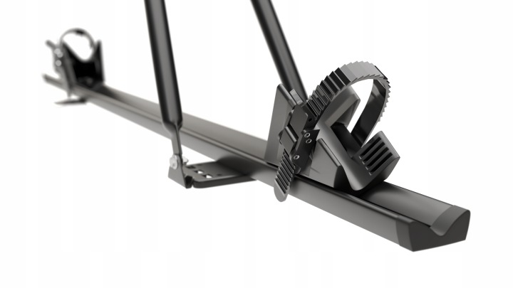 Uchwyt posiada aluminiowy profil, na którym znajdują się regulowane podstawki pod koło. Trwale przytwierdzony pasek usprawnia mocowanie ramy, a klamra na zamek zapewnia komfortowe i bezpieczne zaciągnięcie paska.