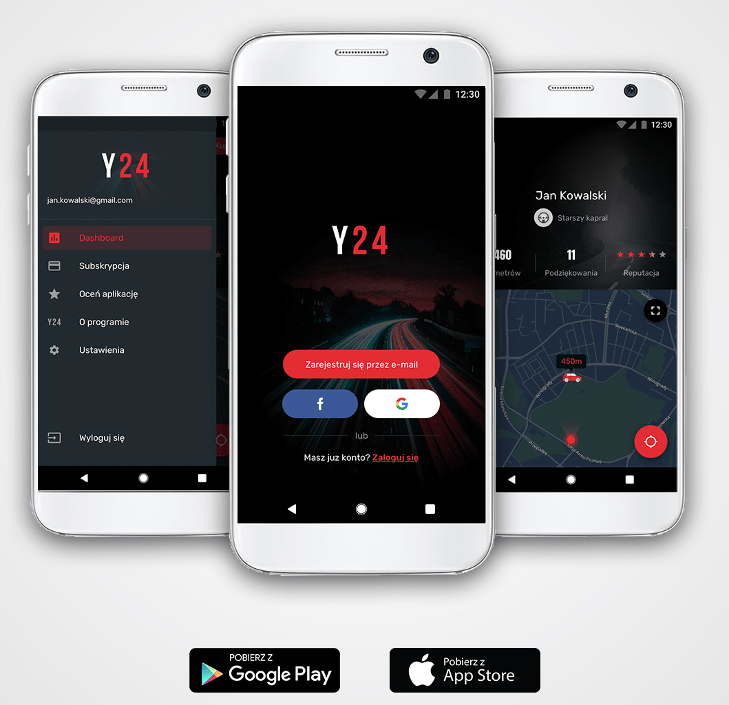 Pobierz bezpłatną aplikację Y24 i zyskaj dodatkowe możliwości. W Y24 sprawdzisz lokalizację Twojego auta na mapie a także przejrzysz historię Twoich zgłoszeń i podziękowań.