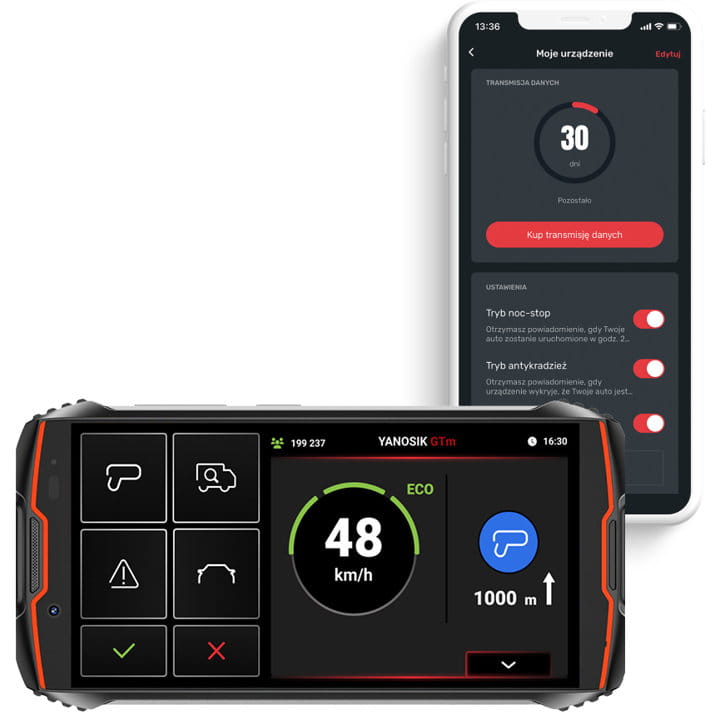 Nowy Yanosik GTm jest w pełni kompatybilny z darmową aplikacją Y24. Połącz go ze swoim smartfonem i zyskaj: