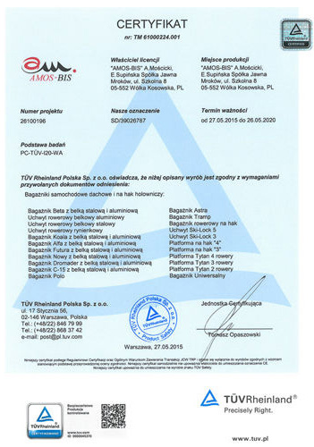 ![]() | Certyfikat TÜV Rheinland - posiadanie przez produkt tego certyfikatu świadczy o spełnianiu przez niego rygorystycznych norm bezpieczeństwa, jakości i użyteczności. Wydawany przez niezależny od producentów organ jest gwarancją rzetelnej, wiarygodnej i profesjonalnej oceny produktów; | |