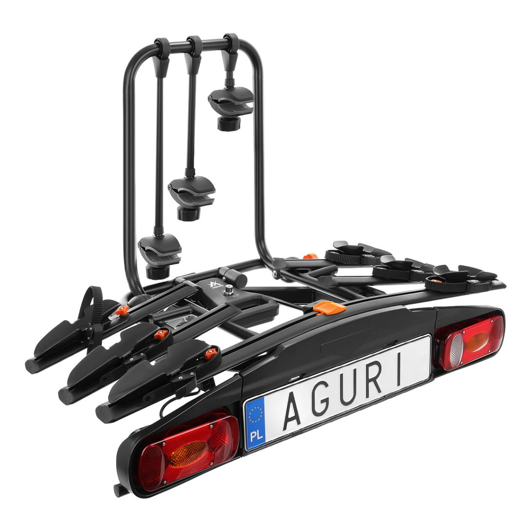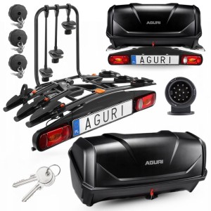 Bagażnik rowerowy na hak Aguri Active Bike 3 rowery czarny + Box Bagażowy na platformę 380L
