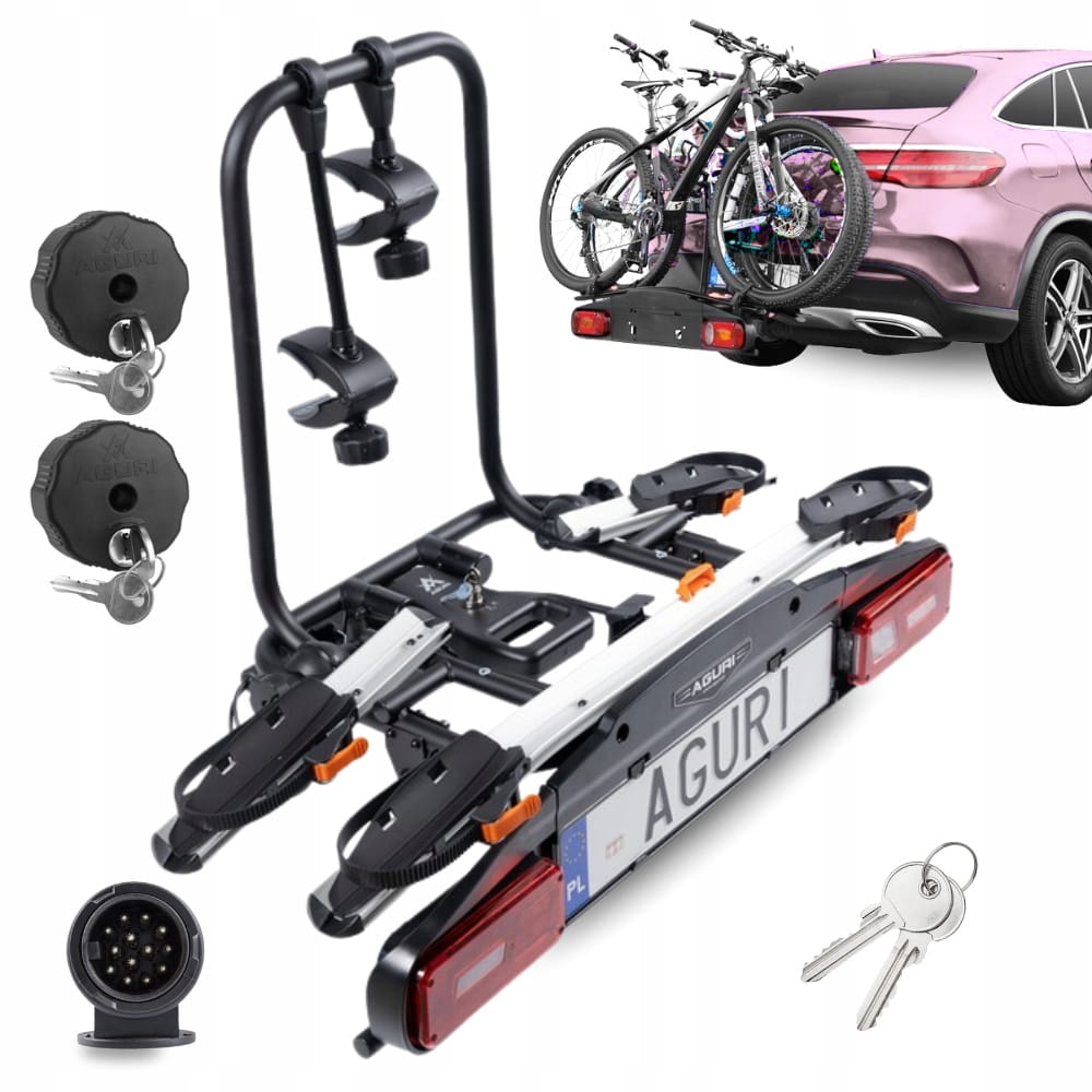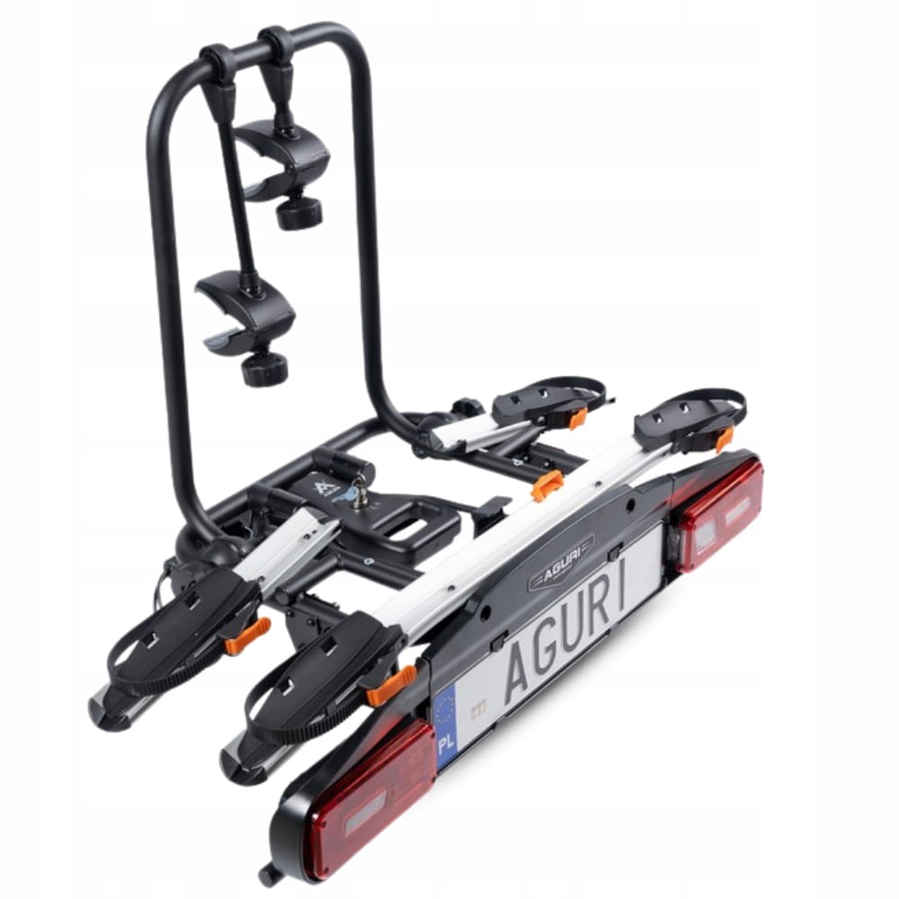 Bagażnik rowerowy na hak Aguri Active Bike Pro 2 rowery srebrny uchylany odchylany 60kg zamki na kluczyk