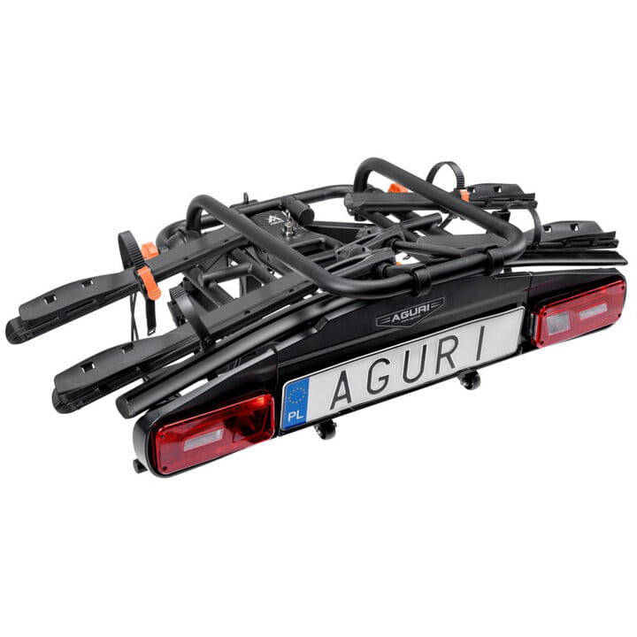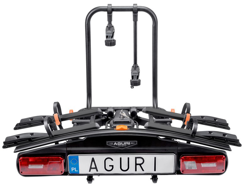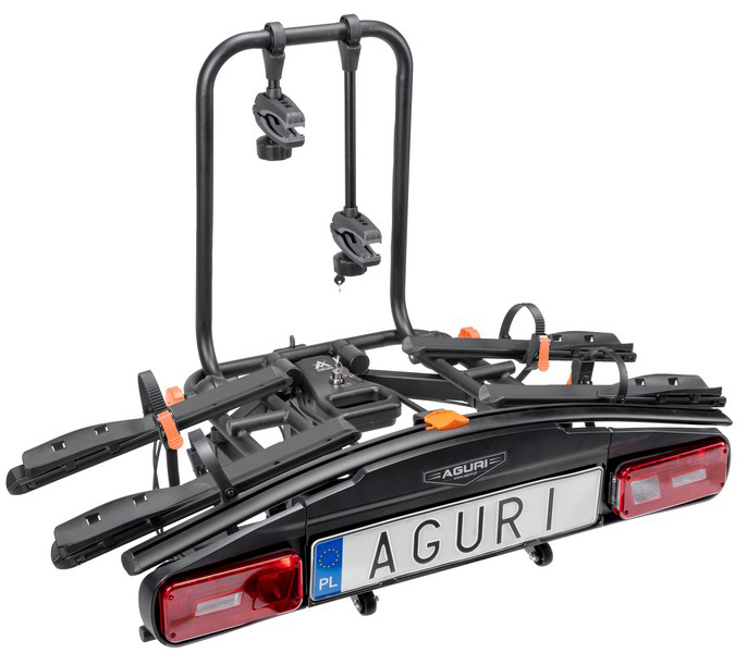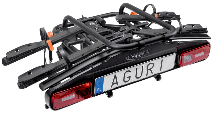 Bagażnik rowerowy na hak Aguri Active E-Bike 2 rowery elektryczne czarny uchylany odchylany 60kg zamki na kluczyk