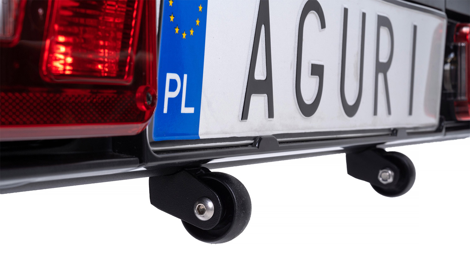 Bagażnik Aguri Active E-Bike to platforma, która została zaprojektowana z myślą o użytkownikach rowerów elektrycznych. Powiększony rozstaw osi roweru, zwiększona odległość pomiędzy rowerami, szeroka rynienka koła, to główne cechy, które odróżniają tę platformę od innych modeli Aguri. Platforma dodatkowo została wyposażona w kółka, które ułatwiają transportowanie platformy.