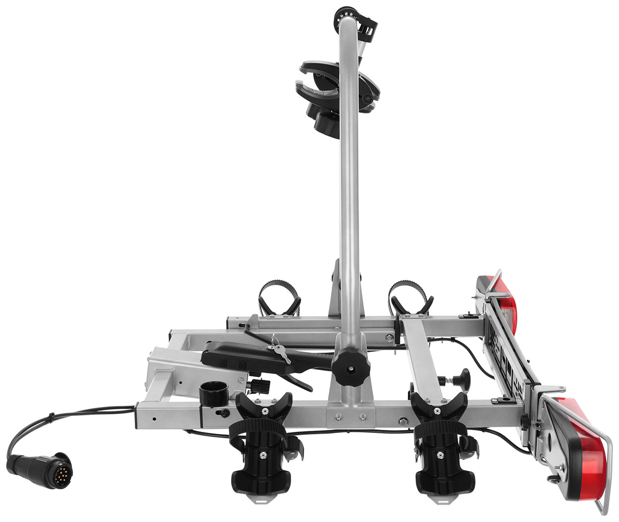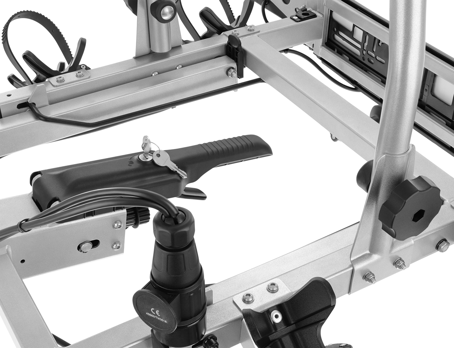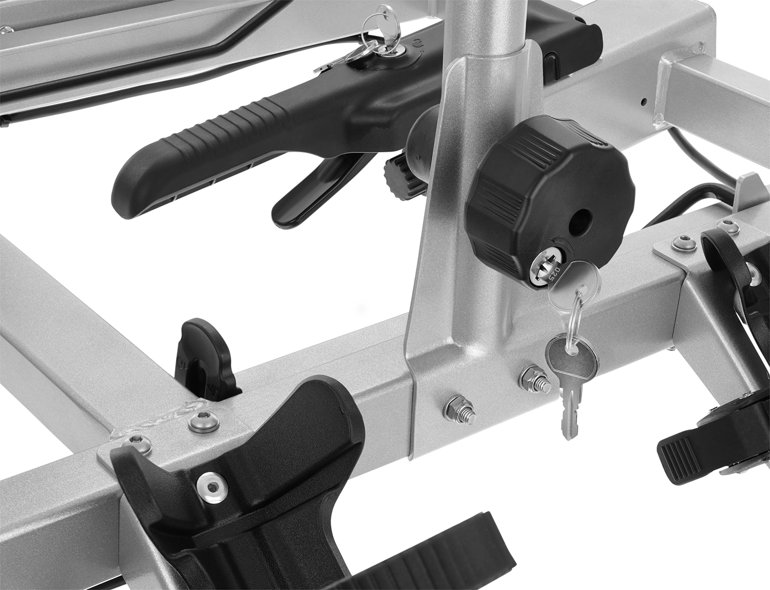 Bagażnik w miejscu montażu na haku posiada indywidualny zamek zamykany na kluczyk zabezpieczający platformę podczas transportu oraz dostarczający ochronę przed kradzieżą. W wersji Ultimate, uchwyty na ramę rowerową również otrzymały zamki zamykane na klucz, dzięki czemu tak samo jak platforma, są zabezpieczone przed niepowołanym dostępem do Twoich jednośladów.