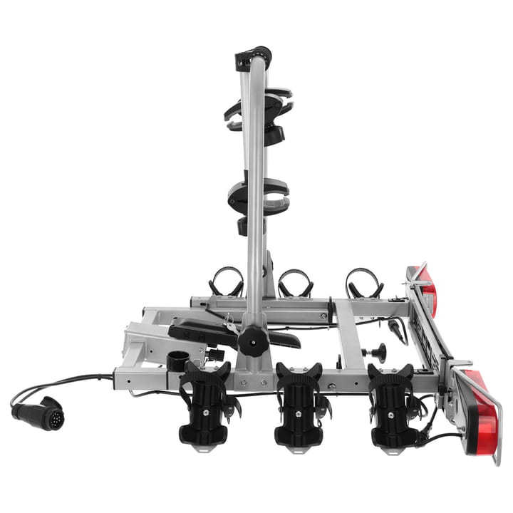 Bagażnik przeznaczony jest do transportowania 3 rowerów jednocześnie. Platforma waży 18,5 kg, a maksymalne obciążenie wynosi 60kg. Montaż bagażnika nie wymaga użycia dużej siły i ułatwia go specjalny system Turn&Click, który odpowiada za regulację docisku platformy do kuli haka holowniczego, dzięki czemu zawsze będziesz mieć pewność, że bagażnik zamontowany jest w odpowiedni sposób.