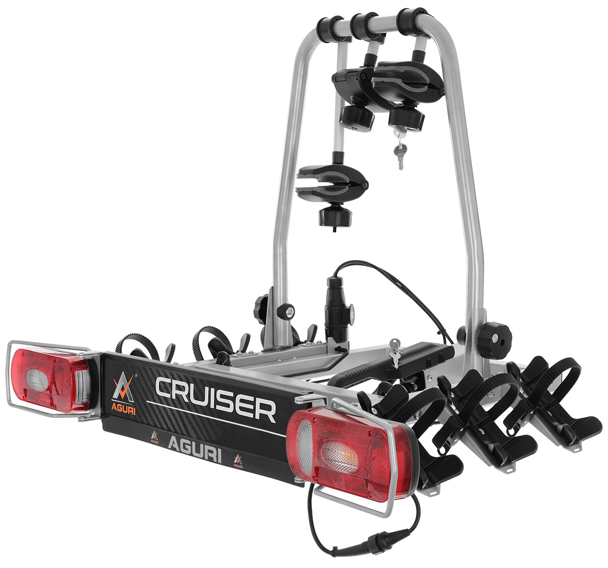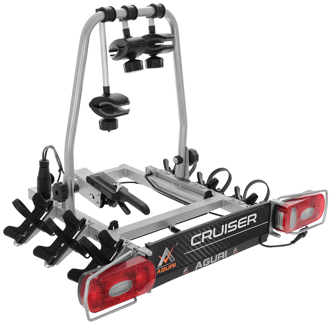 Bagażniki rowerowe firmy Aguri to wysokiej klasy, certyfikowane produkty, które zapewniają wygodę i komfort użytkowania oraz bezpieczeństwo. Prezentowana platforma Cruiser Ultimate to zupełna nowość na rynku - jest wykonana z najwyższej jakości materiałów, które dają pewność, że bagażnik będzie służył na długie lata. Wersja ULTIMATE bagażnika Cruiser posiada pełny pakiet zabezpieczeń antykradzieżowych - w zestawie oprócz zamknięcia platformy na haku znajdują się także gałki z zamkami do zabezpieczenia rowerów w uchwycie