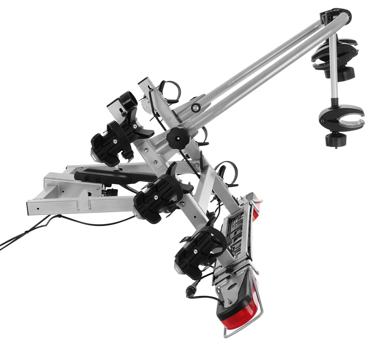 Platforma posiada funkcję uchylania, także z zamontowanymi rowerami. Dzięki niej, bez problemu można dostać się do bagażnika samochodu w prosty i wygodny sposób, bez demontażu całej konstrukcji. Dodatkowo, w wersji Ultimate funkcja ta posiada regulację kąta nachylenia - możesz ustawić uchył na 40° lub 60°. Zadbano także o odpowiednie umiejscowienie pokrętła umożliwiającego uchylanie bagażnika tak, aby było ono w jak najwygodniejszym dla użytkownika miejscu.