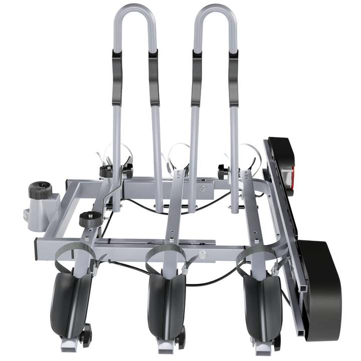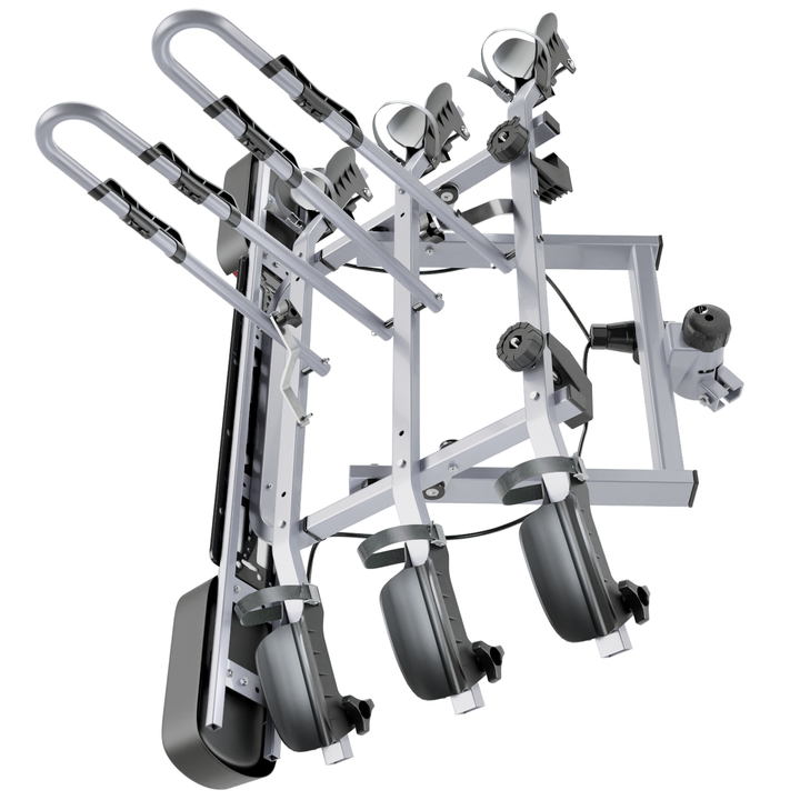 Platforma rowerowa Tytan 3 Plus posiada funkcję uchylenia, nawet jeżeli rowery są zamocowane na platformie. Dzięki temu masz całkowity i bezproblemowy dostęp do bagażnika swojego samochodu.