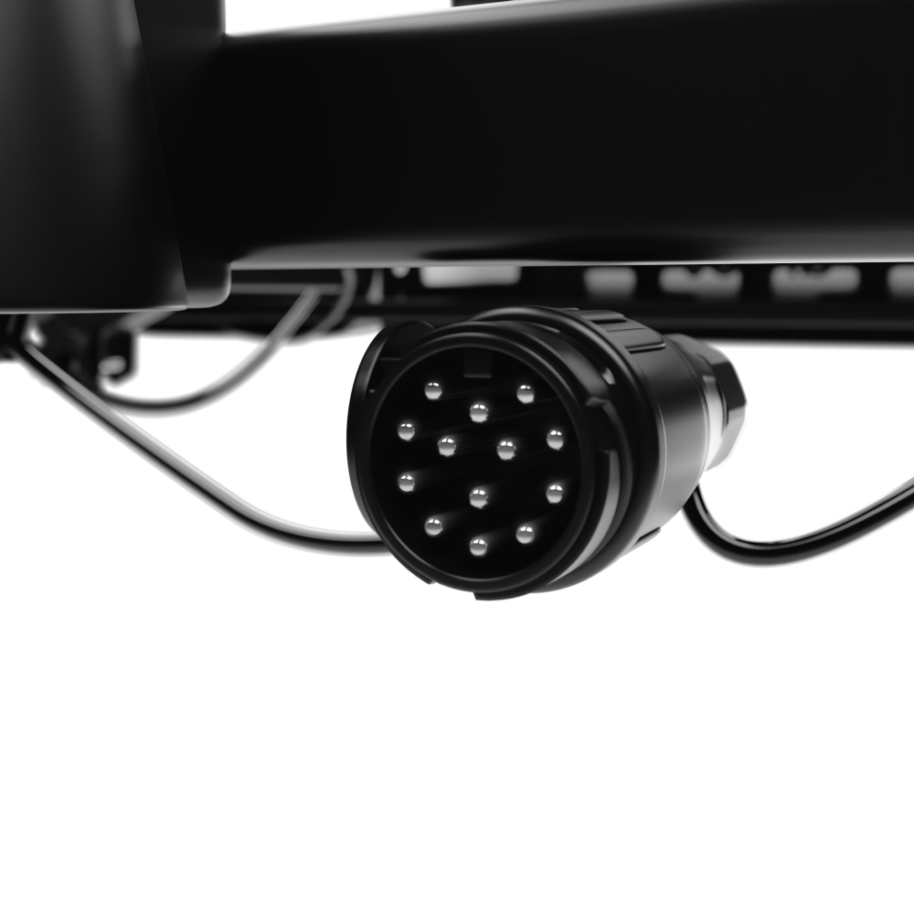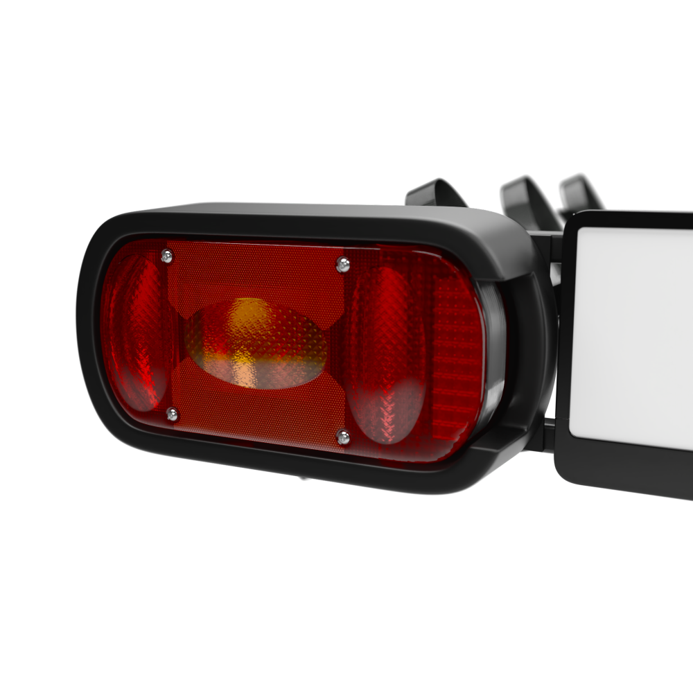 Zgodnie z rozporządzeniem w sprawie warunków technicznych pojazdu z dnia 1 stycznia 2016r. dotyczącym m.in. wymaganych świateł w bagażnikach na hak, listwa świetlna oprócz świateł postojowych, pozycyjnych, stopu, kierunkowskazów i podświetlenia tablicy, powinna posiadać także światło cofania oraz przeciwmgłowe tylne. Do działania tych świateł niezbędne jest podłączenie listwy do wiązki 13 pinowej, gdyż wiązka 7-pin nie obsługuje światła wstecznego. Tablica, w którą wyposażony jest bagażnik jest zatem w pełni przystosowana do wymogów prawnych polskiego ruchu drogowego i posiada światła:
