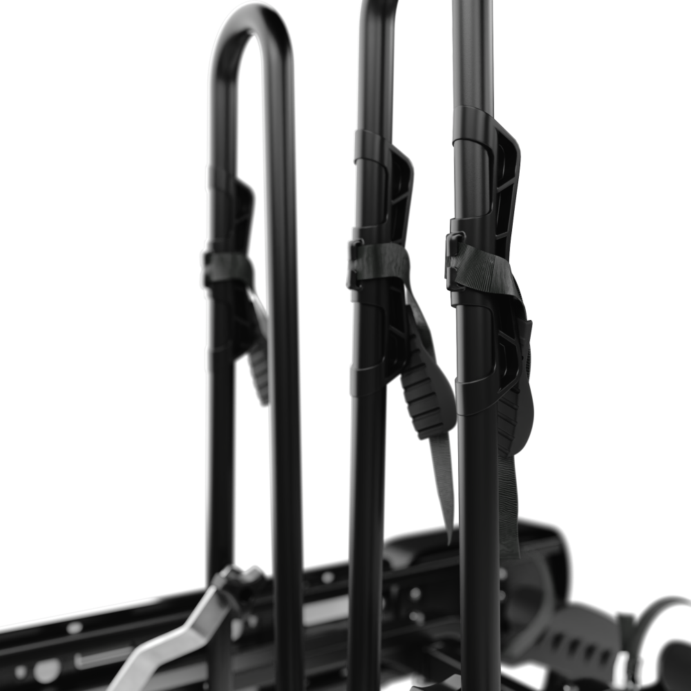 Tytan 3 Plus został wyposażony w zabezpieczenie przed kradzieżą w postaci zamka na kluczyk, a dzięki specjalnym pasom mocującym koła roweru będziesz mieć pewność, że Twój jednoślad pozostanie na swoim miejscu podczas transportu.