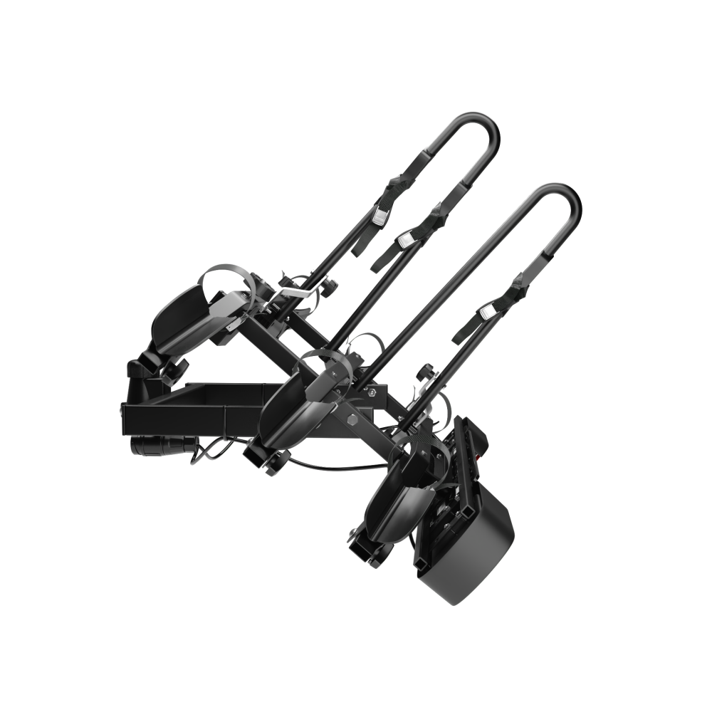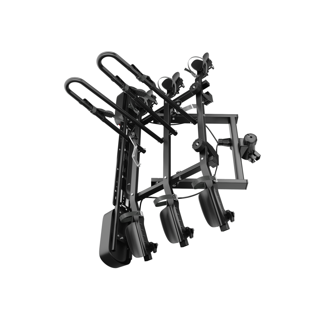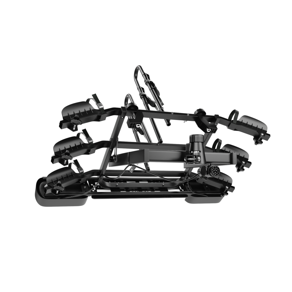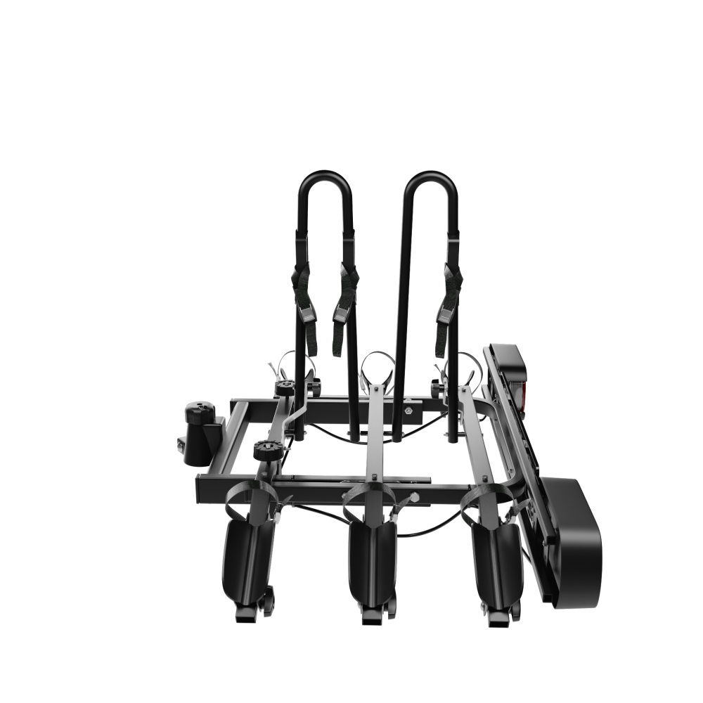 Platforma rowerowa Tytan 3 Plus w kolorze czarnym posiada funkcję uchylenia, nawet jeżeli rowery są zamocowane na platformie. Dzięki temu masz całkowity i bezproblemowy dostęp do bagażnika swojego samochodu.