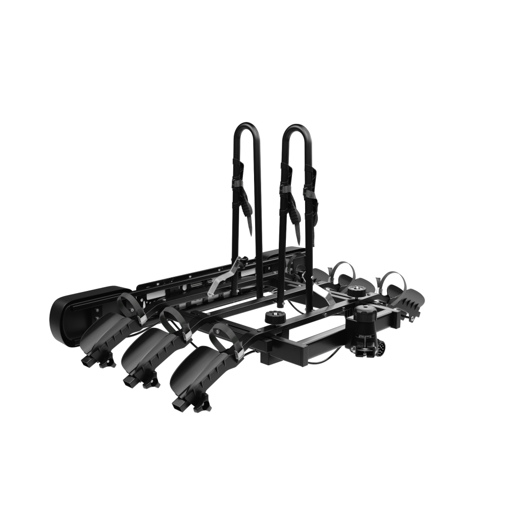 Bagażnik jest na tyle uniwersalny, że pasuje do wszystkich typów rowerów oraz haków holowniczych, a dzięki temu nie musisz się martwić, że zakupiony produkt nie będzie pasował do Twojego samochodu. Dodatkowym atutem platformy jest to, że posiada stabilne, trzypunktowe mocowanie rowerów zarówno za ramę jak i za koła.