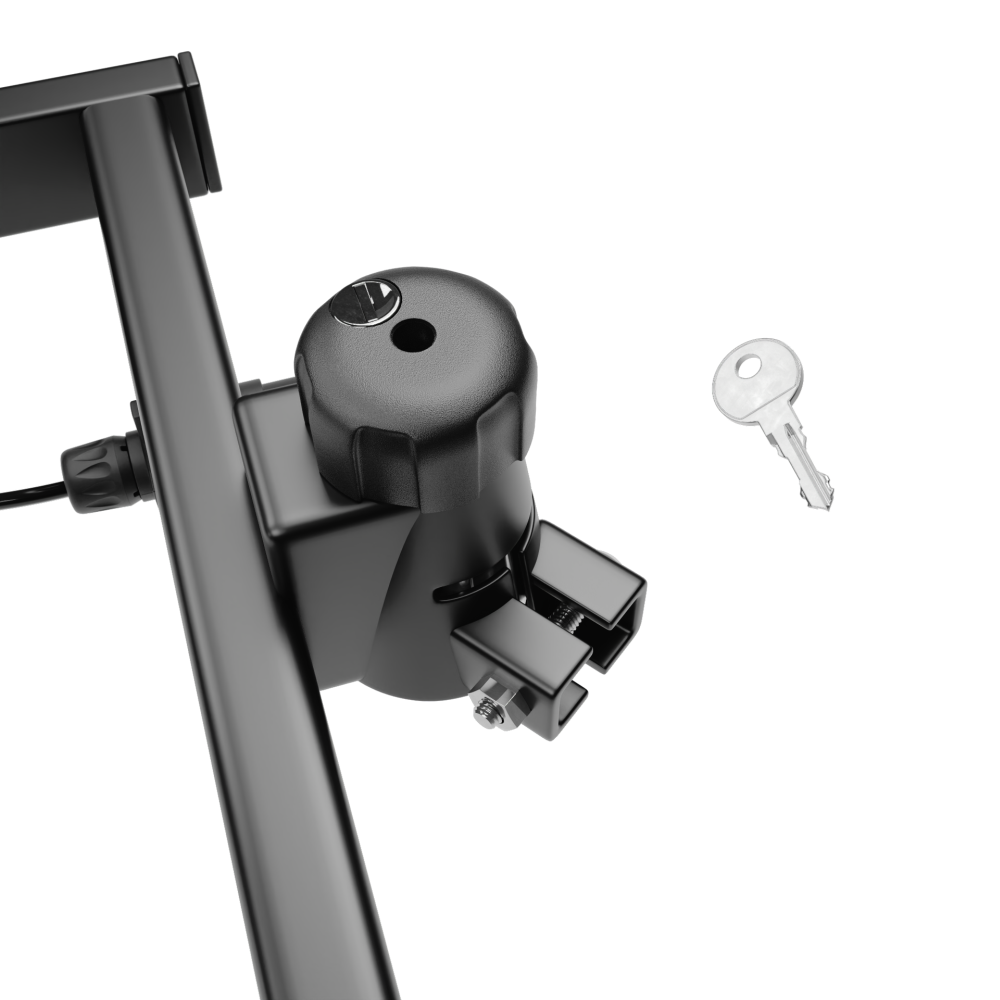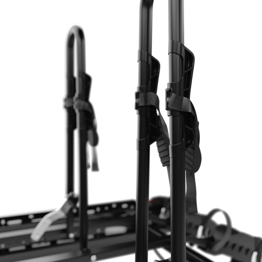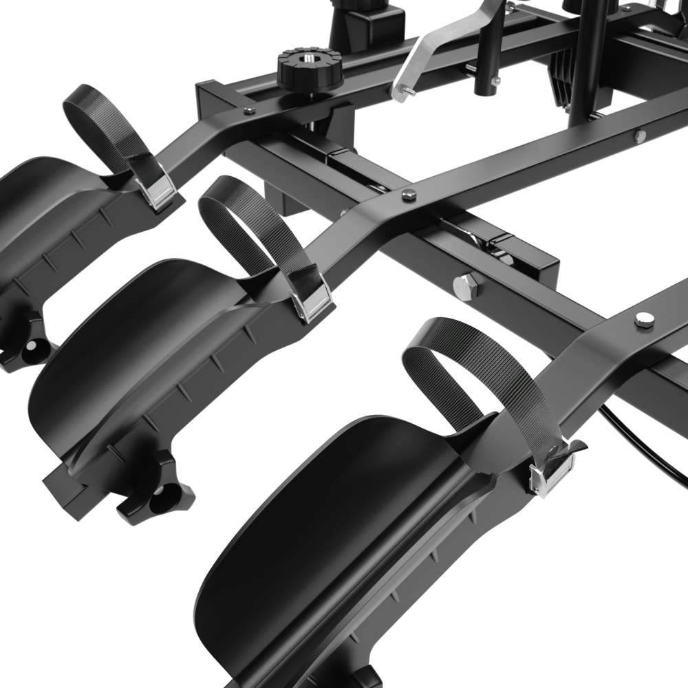 Tytan 4 Plus został wyposażony w zabezpieczenie przed kradzieżą w postaci zamka na kluczyk, a dzięki specjalnym pasom mocującym koła roweru będziesz mieć pewność, że Twój jednoślad pozostanie na swoim miejscu podczas transportu.