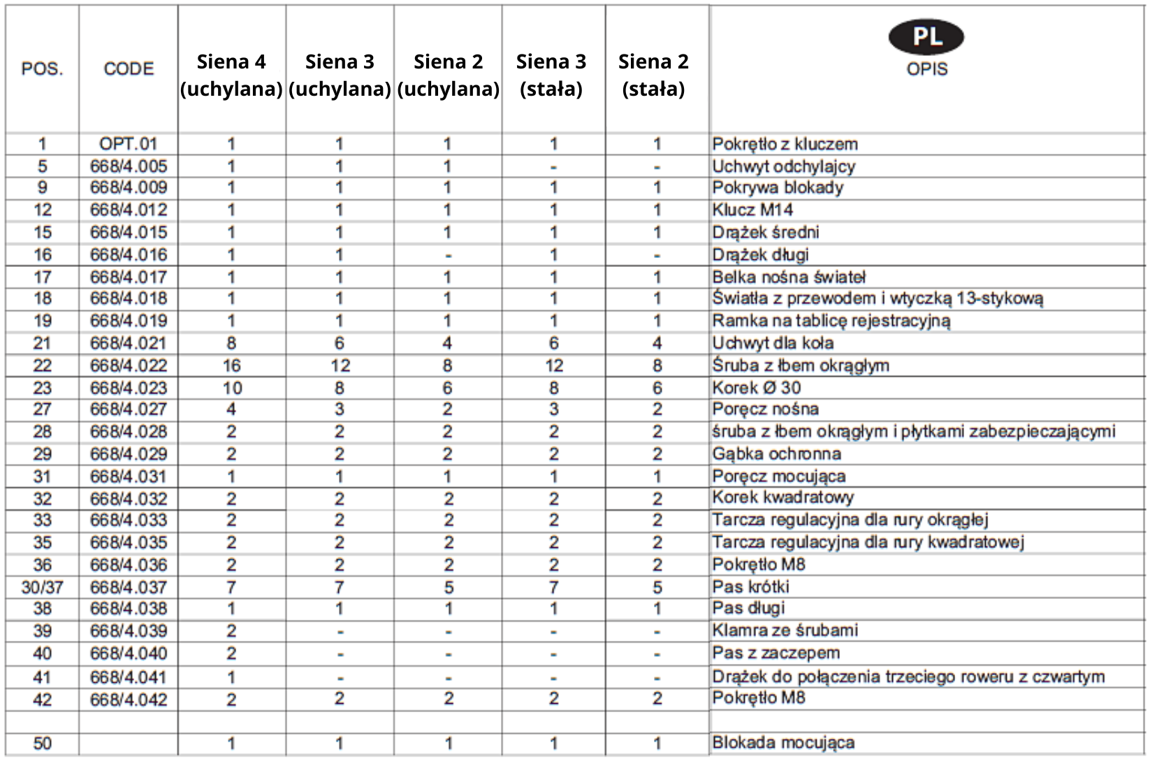 - Zestaw wsporników: pierwszy rower mocujemy na pasy 1 szt. w zestawie, (drugi i trzeci rower na wspornik)