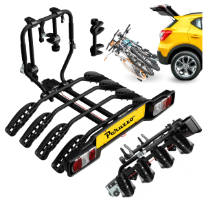Bagażnik na hak włoskiej marki Peruzzo Siena na 4 rowery odchylana.