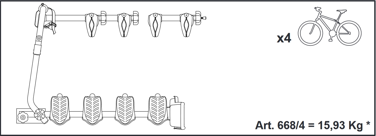 Bagażnik rowerowy Siena 4 można szybko zamontować na każdym haku holowniczym samochodu. Dwa rowery montowane są do ramion z gałką zaciskową, a trzeci rower mocowany jest za pomocą specjalnego pasa. Koła rowerów przewożonych na platformie zabezpieczane są za pomocą opasek uciskowych. Konstrukcja platformy pozwala na złożenie bagażnika w kilku prostych ruchach, ułatwiając przenoszenie i przechowywanie modelu. Sam montaż również jest bardzo prosty i intuicyjny.