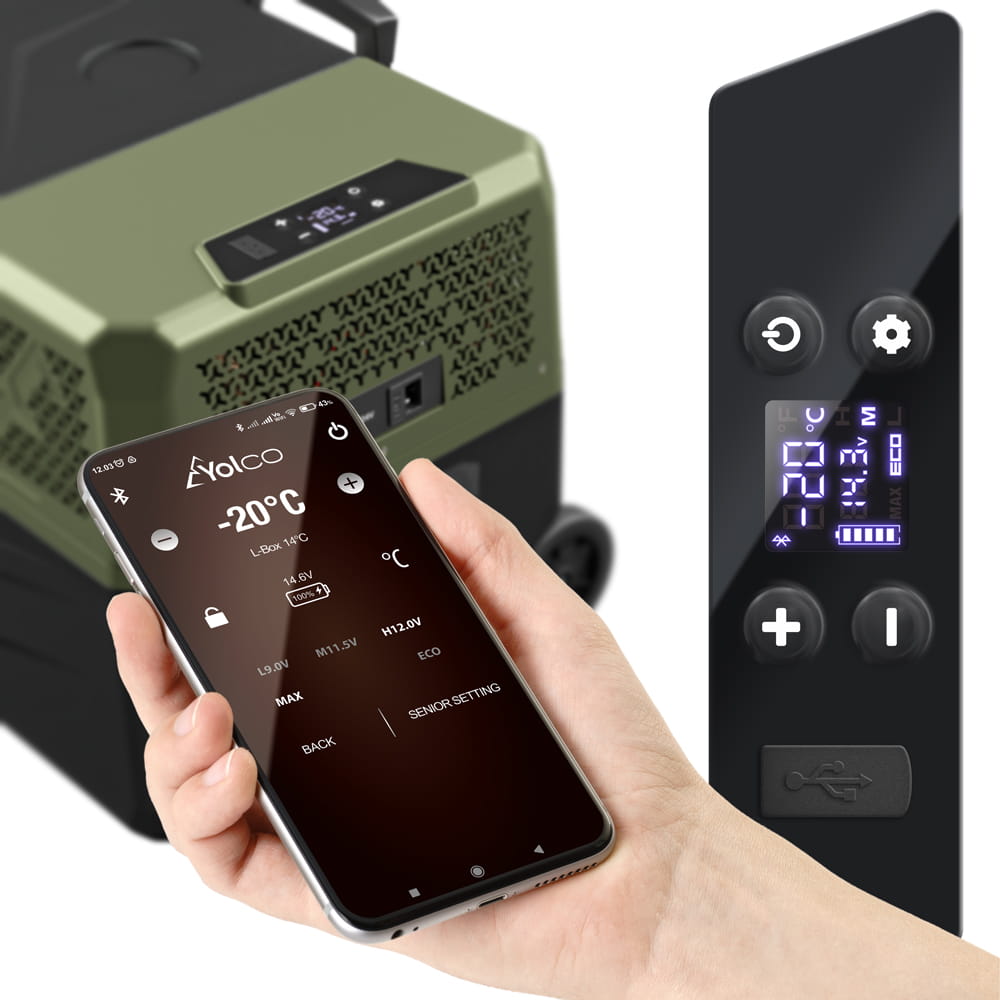 Lodówka Yolco BCX30 posiada wbudowany Bluetooth 5.0, dzięki któremu możesz sterować jej ustawieniami, a także monitorować np. poziom temperatury czy stopień naładowania za pomocą kilku szybkich gestów na telefonie.