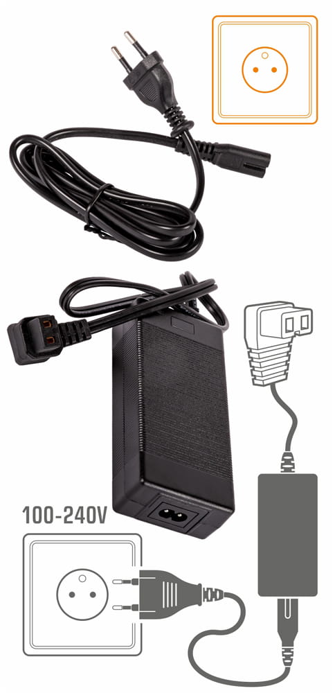 - Adapter AC / DC z przewodem zasilającym 100-240 v