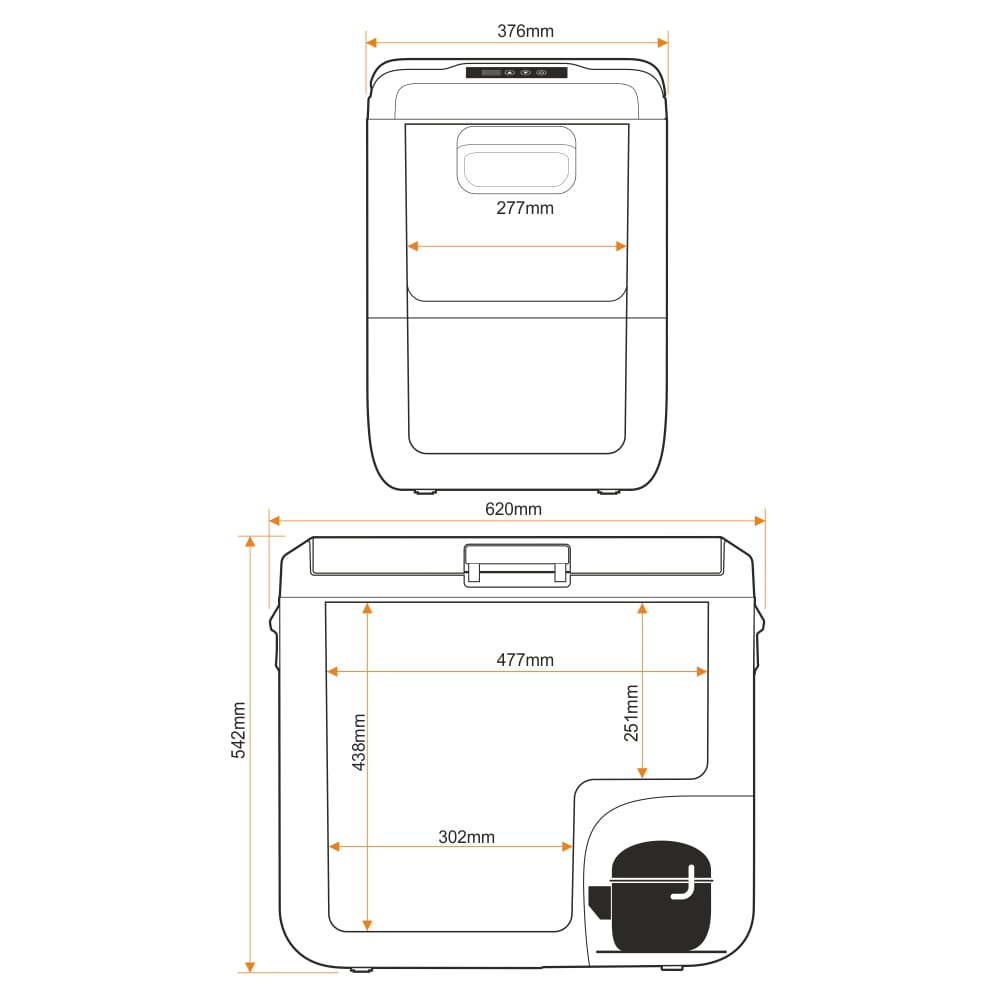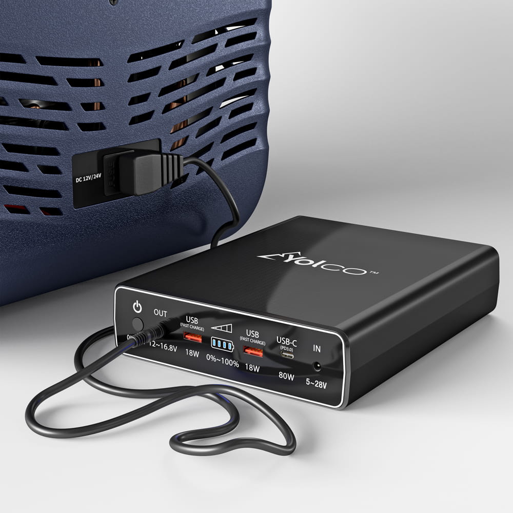 Lodówka NX50 może być także zasilana za pomocą zewnętrznej baterii, która umożliwi utrzymanie temperatury wewnątrz urządzenia nawet do 22 godzin (5°C/41°F przy temperaturze otoczenia 25°C/77°F). Baterię znajdziesz do dokupienia w naszym sklepie (zobacz zakładkę "Niezbędne akcesoria").