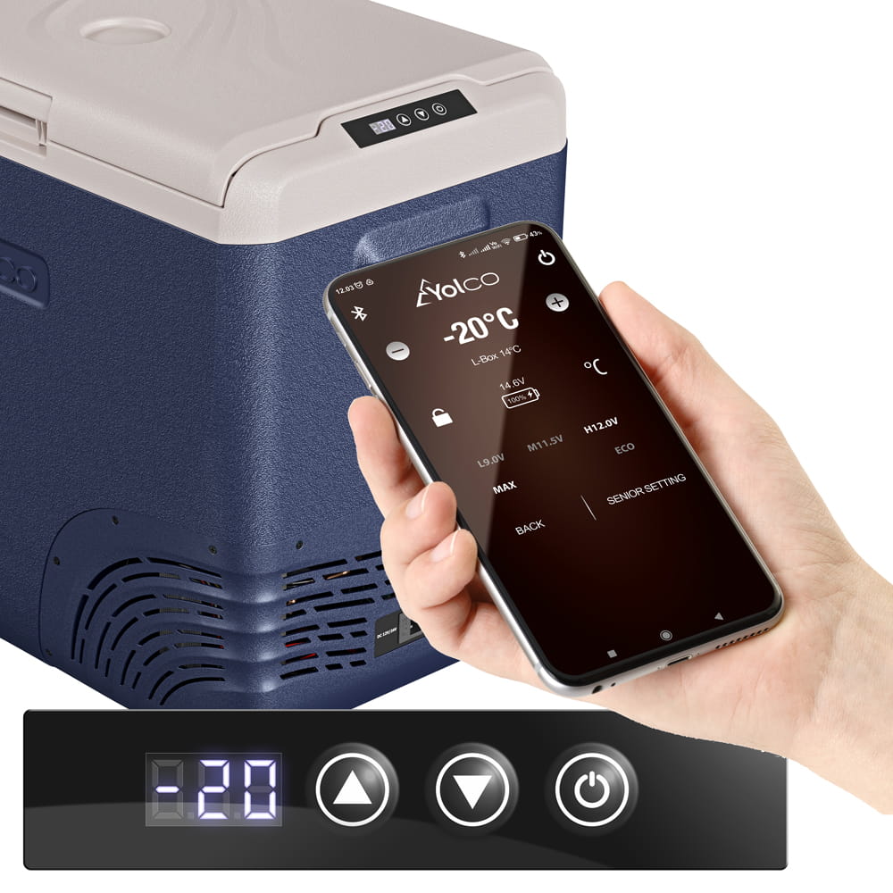 Lodówka Yolco NX50 posiada wbudowany Bluetooth 5.0, dzięki któremu możesz sterować jej ustawieniami, a także monitorować np. poziom temperatury czy stopień naładowania za pomocą kilku szybkich gestów na telefonie.